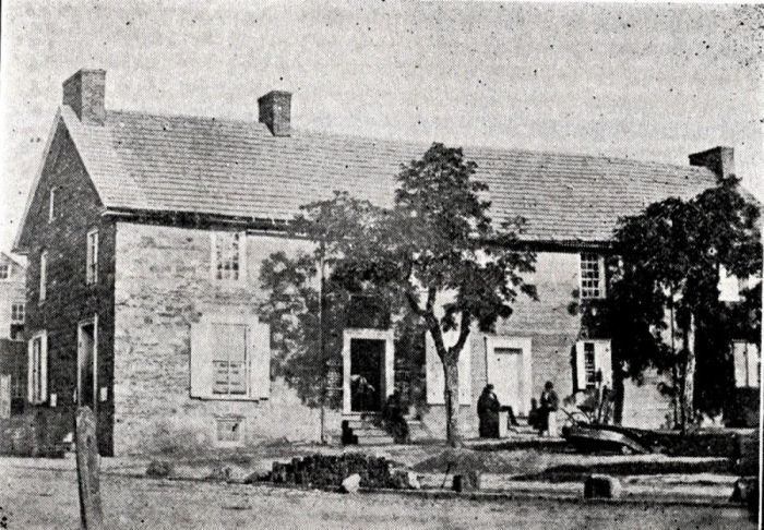 Over the succeeding years new buildings were erected on the site of the King's House / Rising Sun Tavern. The open yard that lay between the west wall of the Rising Sun and the Juliana and Pitt Streets intersection became the site of the Ridenour Building, constructed in 1898. The three floors and immense dimensions of the building (it measured approximately sixty by sixty feet) soon spawned the name 'Ridenour Block.' Three brick buildings filled in the space between the Ridenour and the Italianate structure that was unharmed in the fire.