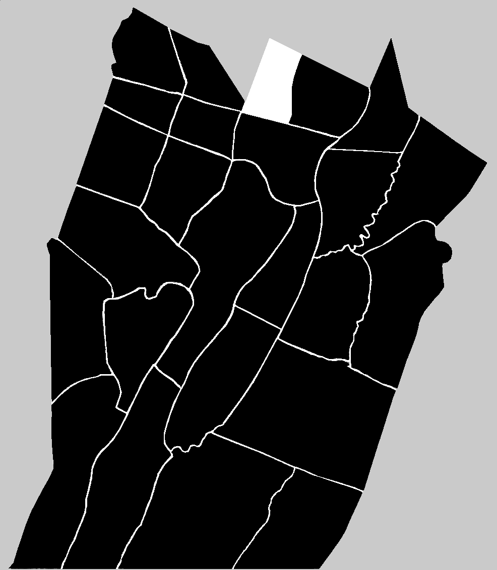 The last division of what was, in 1785 defined as Woodberry Township came nearly a century later. In 1876 the township of Middle Woodbury, situated north of South Woodbury, was divided approximately in half by a surveyed north-south line running through the valley between Dunnings Mountain in the west and Tussey Mountain in the east. The word 'middle' was dropped from the name of Middle Woodbury for the eastern half, and the western half was given the new name of Bloomfield.