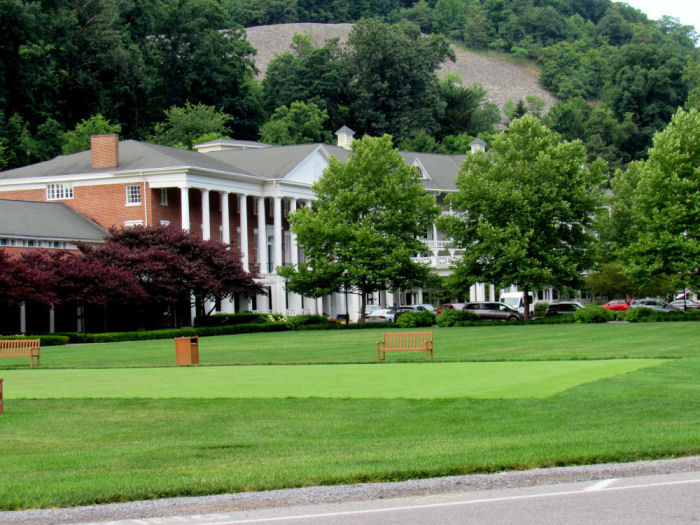 The golf course was laid out to the south of the resort as a nine-hole course about the year 1895, making it one of the oldest in the nation. It was first designed by Spencer Oldham. The course was enlarged to eighteen holes in 1912 by A. W. Tillinghast. It was then redesigned by golf-course architect Donald Ross in 1923. The golf course encompasses roughly one hundred and fifty acres. The course is not only noted for its age, but for the fact that it features five par-fives and five par-threes. At the golf course's south end, to the east lies the Red Oak Lake, formerly called Lake Caledonia. A boathouse and barn provide facilities for the enjoyment of the man-made pond.