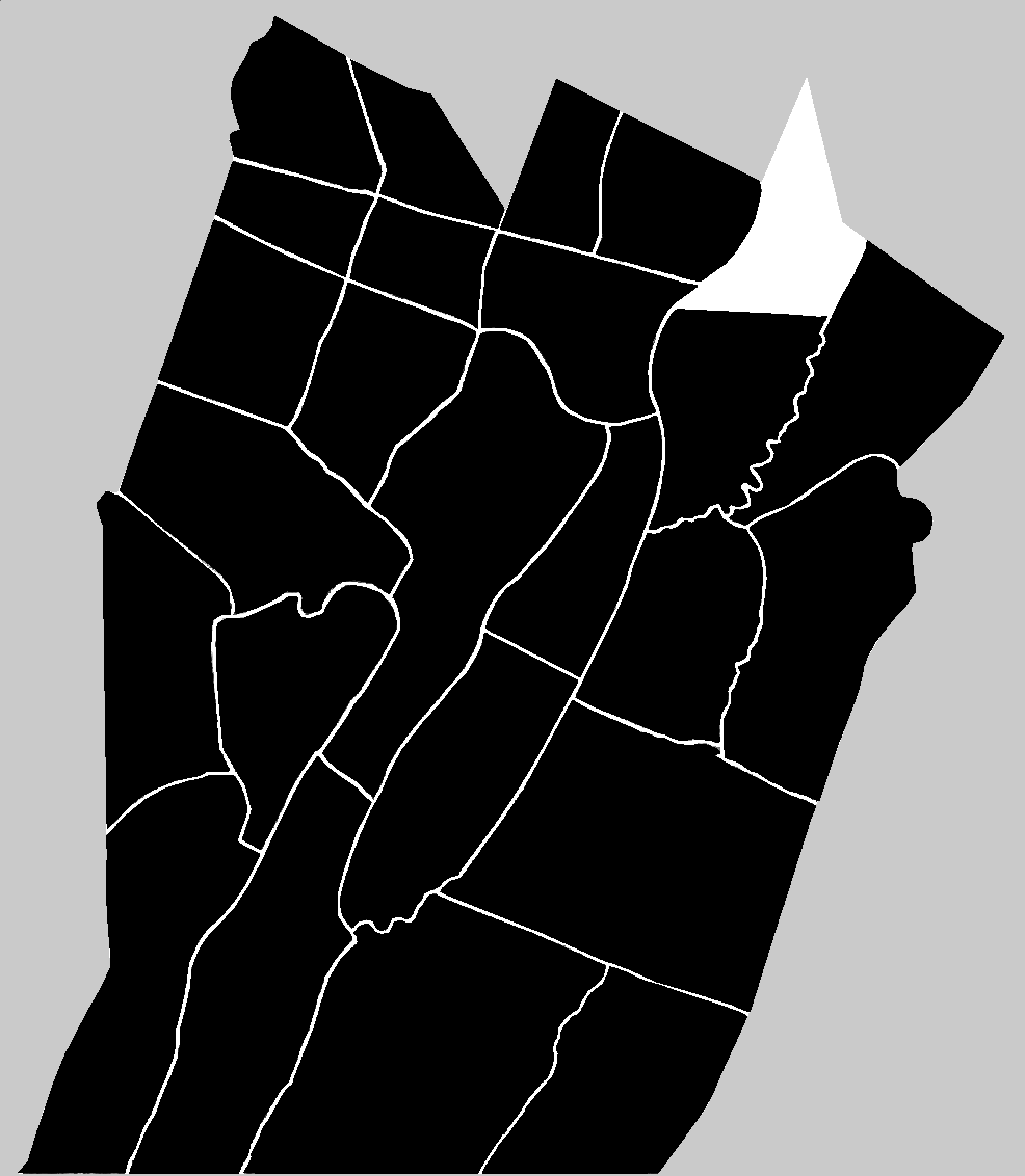 At a Court of Quarter Sessions of the Peace held at Bedford on the 5th day of February Anno Domini 1845, before the Judges of the same Court. The persons appointed at November Sessions 1844 to view the lines proposed for the division of Hopewell Township having reported that in pursuance of said order, we have reviewed the same, and that in our opinion a division is necessary we have laid out and retain the following line for a division, beginning at a locust on the banks of the West side of Riddelsburg on the Raystown branch of the Juniatta, thence North eighty seven degrees West four Miles and sixty perches to the top of Tussey's Mountain, to intersect the line between the Hopewell and Woodberry Townships. A plot or draft whereof is hereunto annexed. And the said report having been referred back to same Commissioners with instructions to return a draft or plot of the whole Township made report as follows ~ Beginning at a locust on the banks of the West side of Riddelsburg on the Raystown branch of Juniatta, thence North eighty seven degrees West four Miles & sixty perches &c. A plot or draft whereof is to the said report annexed, which report being made in the mari[illegible] and at the time prescribed by law, the Court approves of and confirms the same and divides said Township accordingly. And the Court order and direct that that part lying on the North in the draft returned by the commissioners be erected and established as a new township to be called "Allegripus" and that part on the South in said draft be erected and established as a new township to be called "Hopewell". By the Court