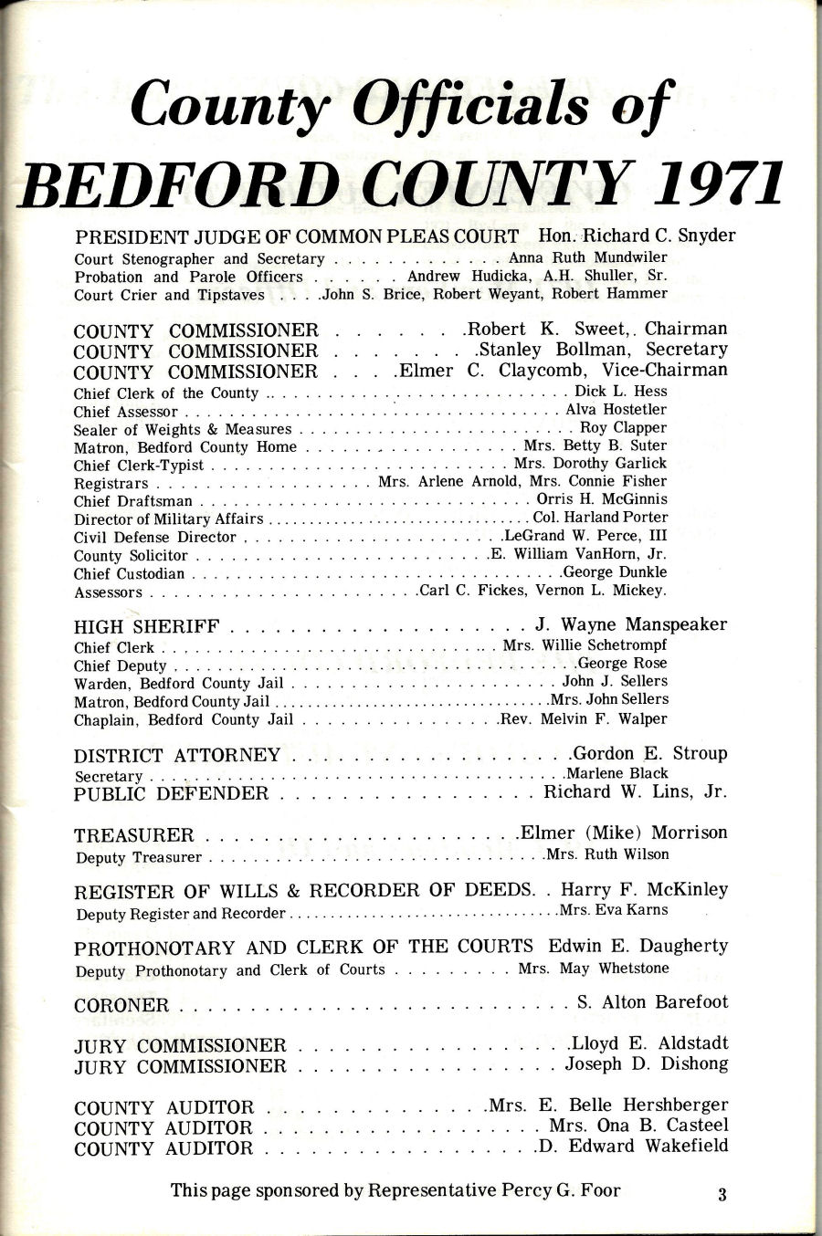 of the Bedford County Bicentennial was a list of the Commissioners and other public officials serving the county at the time.